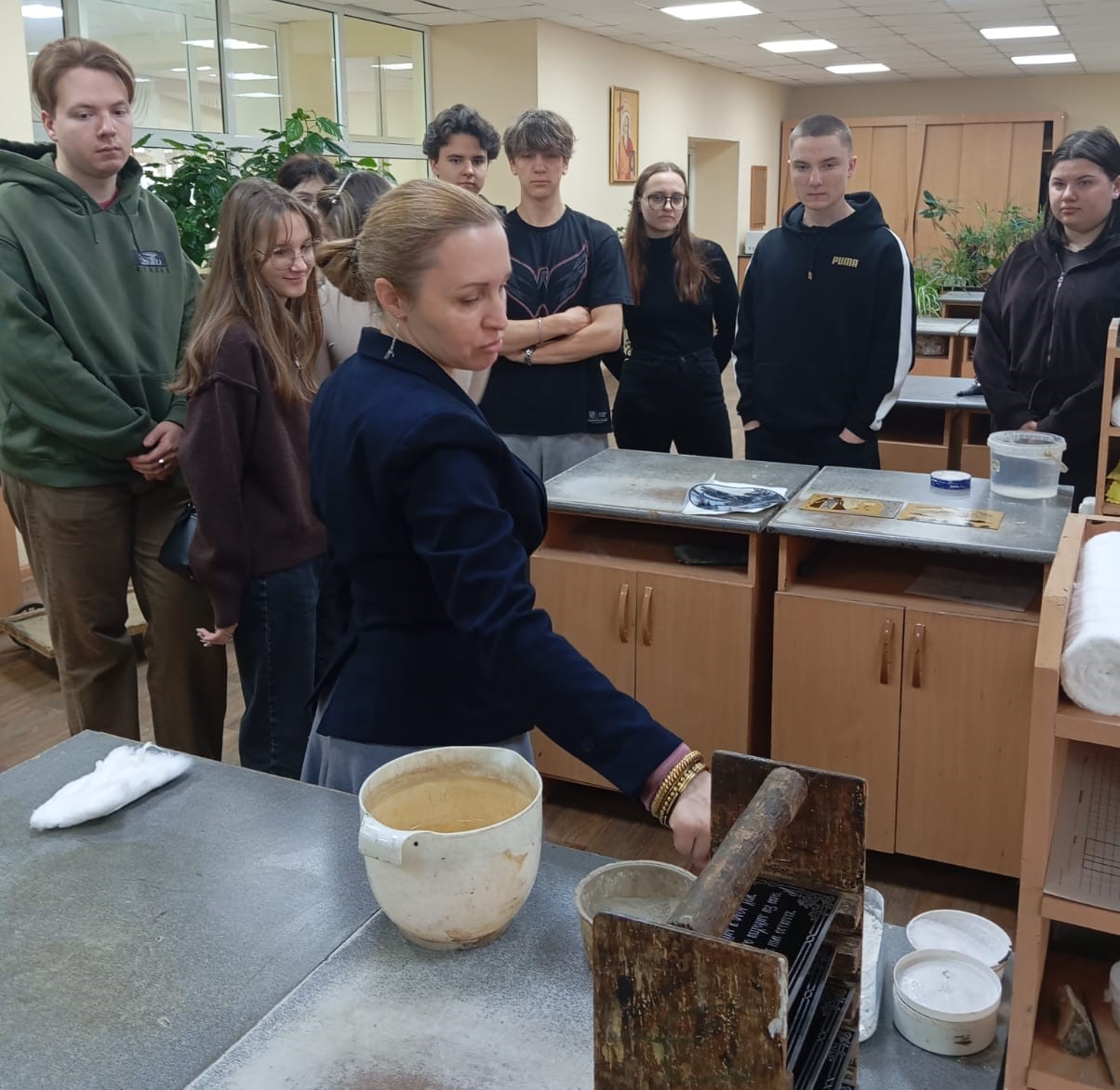 После посещения музея студентам показали мастерские Оружейной фабрики, в которых их познакомили с приемами проектирования изделия на стали, в том числе живописными эскизами новых изделий, которые являются совершенно самостоятельным творческим материалом и представляют большой интерес для современного искусства.