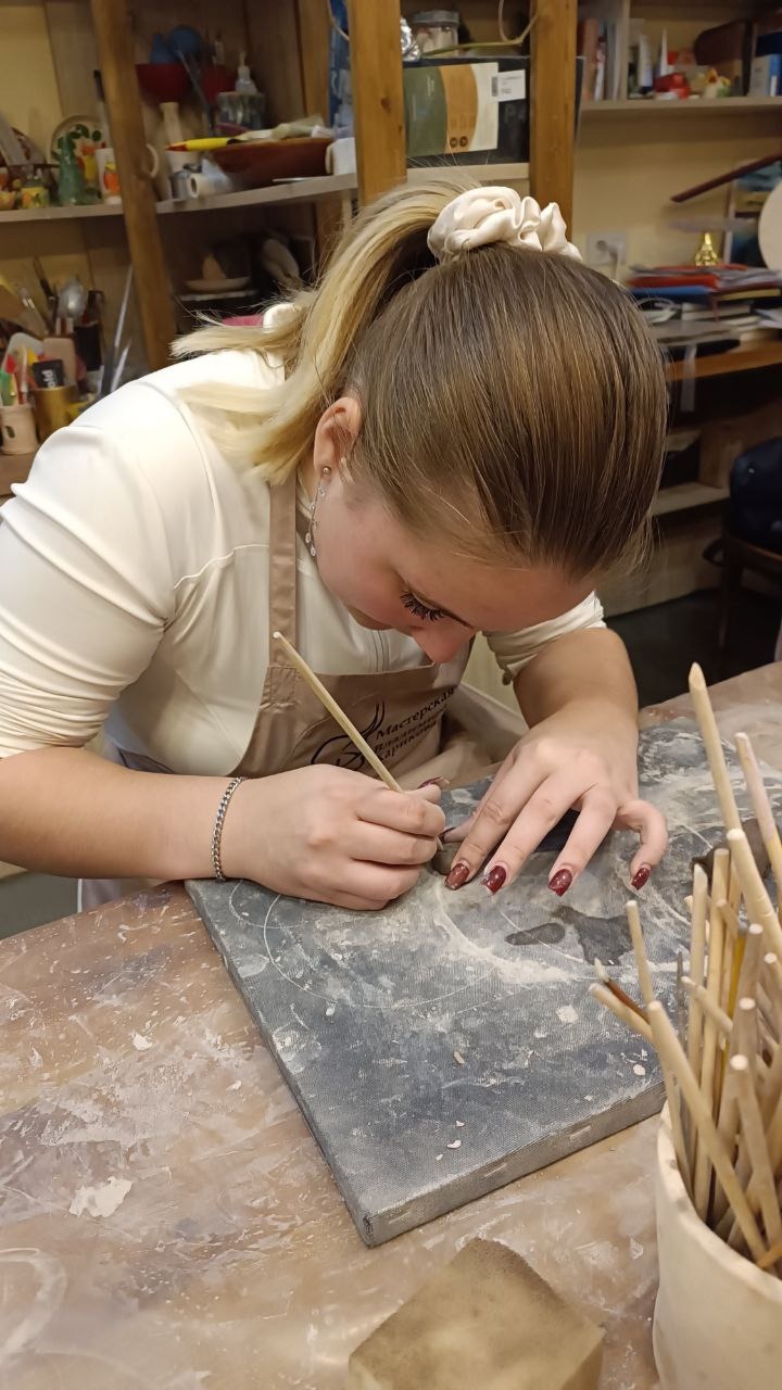 Изюминкой мастер‑класса по отминке в форме — это практическое занятие, где студенты отработали создание рельефных элементов в формах мастера. Ребята отметили, как полезно сразу применить полученные знания и увидеть, как из плоской заготовки рождается выразительный рельеф.