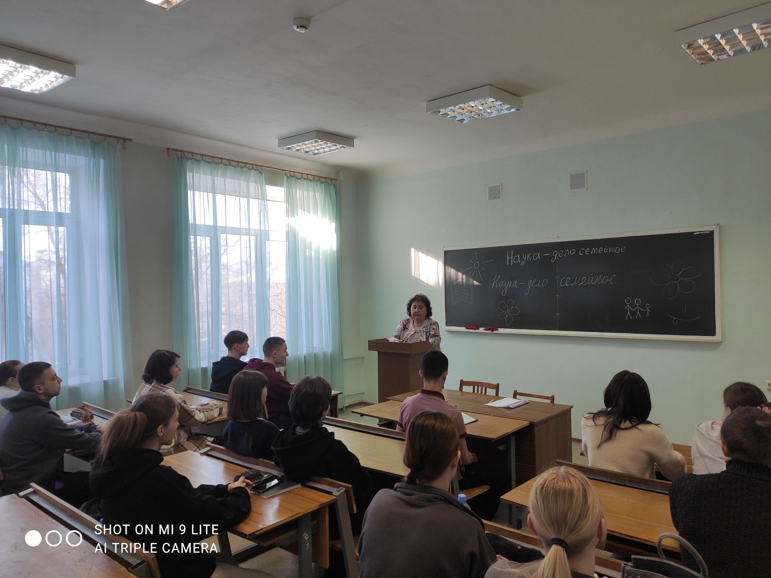 В целях популяризации ценности крепкой семьи, а также вклада местных ученых в развитие науки в нашем регионе 6 февраля 2026 года в нашем филиале была проведена тематическая лекция для студентов первого курса на тему «Наука-дело семейное», приуроченная ко Дню российской науки, который отмечается 8 февраля 2026 года.