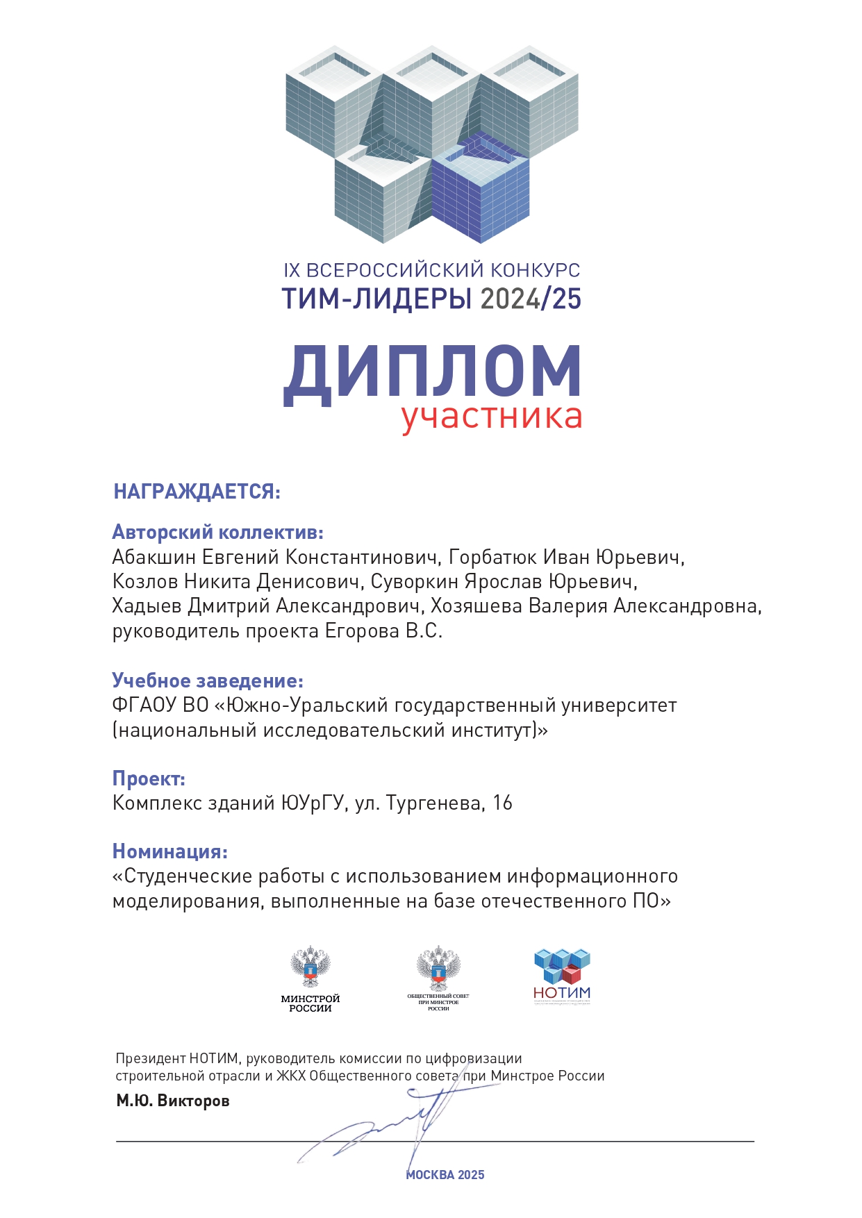 Именно в этом разделе участвовали наши ребята. Их проект был выполнен с применением BIM-системы Renga Professional под руководством преподавателя кафедры «Промышленное и гражданское строительство» В.С. Егоровой.