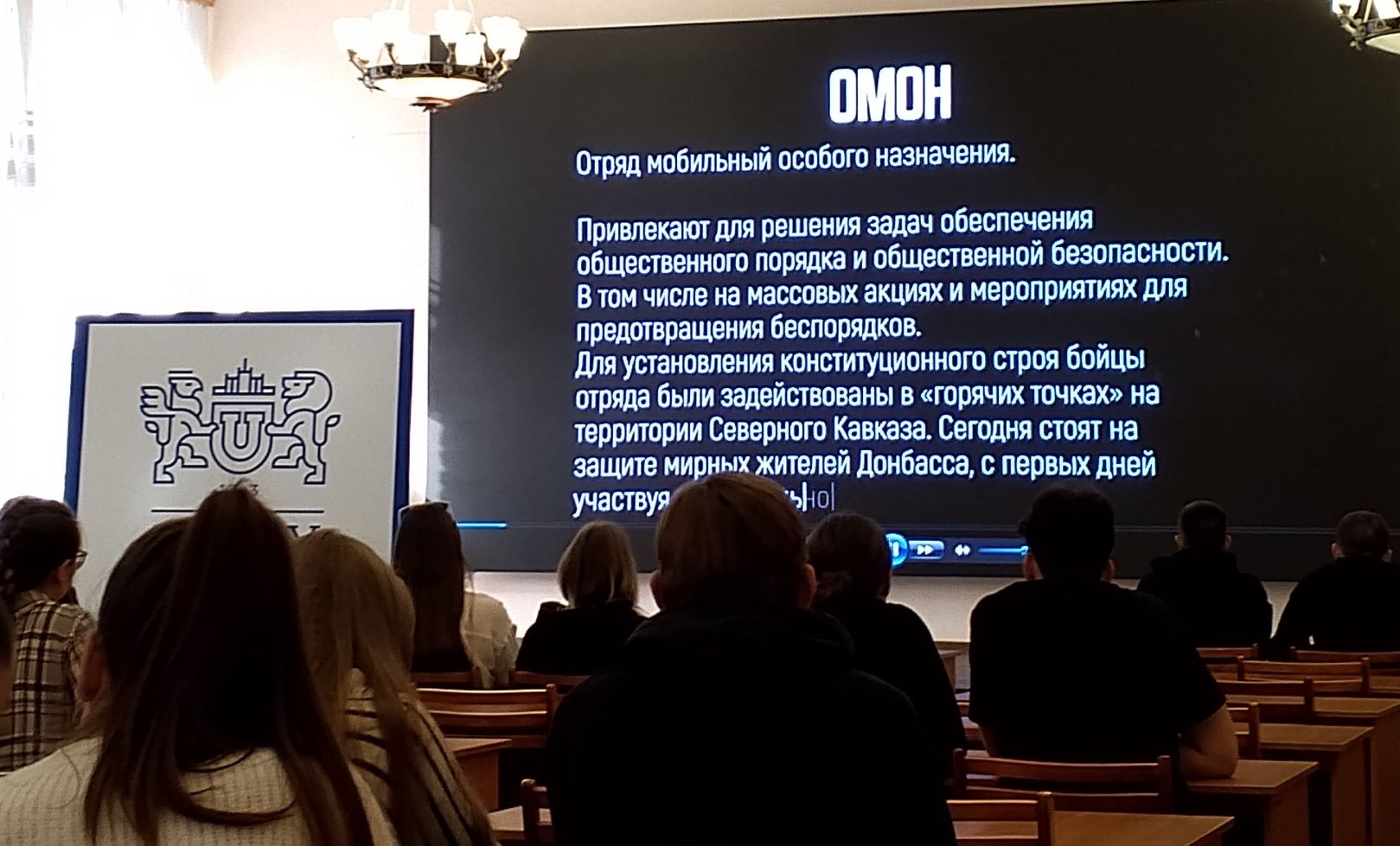 Сотрудники ОМОН «Таганай» Управления Росгвардии по Челябинской области познакомили студентов со спецификой работы, о льготах и преимуществах, которые имеют сотрудники ОМОН «Таганай», а также какие есть вакансии и перспективы карьерного роста. Рассказали ребятам, как правильно вести себя при атаке беспилотников, при обнаружении опасных предметов.